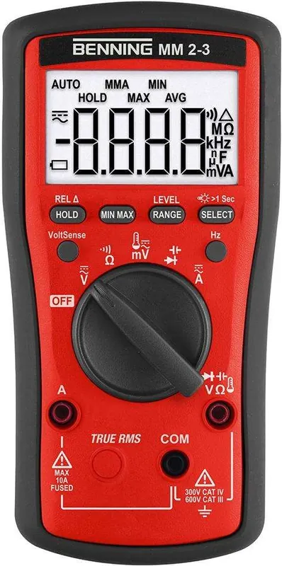 Miernik cyfrowy uniwersalny MM 7-2Wykonanie: korpus z tworzywa sztucznego odpornego na uderzenia ze zintegrowaną gumową ramką ochronną. Z czujnikiem napięcia i metodą pomiaru TRUE RMS dla precyzyjnych wyników pomiarowych, także z niesinusoidalnymi przebiegami sygnału. Dostawa wraz z kompaktowym futerałem ochronnym, podwójnie izolowanymi, bezpiecznymi przewodami pomiarowymi i bateriami.MM 7-2. Funkcja Auto V do automatycznego rozpoznawania napięcia stałego i przemiennego, niska impedancja wejściowa (LoZ) do tłumienia pojemnościowych/indukcyjnych napięć. Dostawa z silikonowymi przewodami pomiarowymi z pozłacanymi końcówkami pomiarowymi 2 mm i 4 mm oraz kanałowym czujnikiem temperatury.