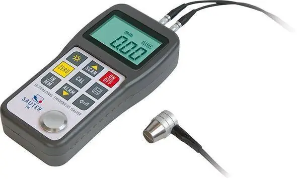 Miernik grubości materiałuWykonanie: z zewnętrzną głowicą pomiarową. Interfejs USB i pamięć wewnętrzna do 20 plików z 100indywidualnymi wartościami każdy, dokładność 0,5 % mierzonej wartości maks. ±0,04 mm.Dostawa z bateriami 2 x AA, 1,5 V, w walizce transportowej. Funkcje: tryb skanowania i pojedynczy punkt pomiarowy. Automatyczne wyłączenie.