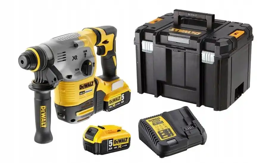 3-funkcyjna młotowiertarka bezszczotkowa akumulatorowa 18V 2,8J 2x5Ah DeWALT DCH283P2 Najwyższa w swojej kategorii prędkość wiercenia umożliwiająca wykonanie ponad 74 otworów (10mm O x 80mm) na jednym naładowaniu Zatrzymanie obrotów do lekkiego podkuwania w tynku, ceramice lub murze oraz wyłączenie udaru do wiercenia w drewnie i metalu Bezszczotkowy silnik o dużej wydajności oraz akumulator Li-ion XR 18 V o pojemności 5.0Ah dla wydłużonego czasu pracy oraz zmniejszenia potrzeby serwisowania System Perform & Protect: najniższy w swojej klasie poziomom wibracji 8,5 m/s2 zwiększa bezpieczeństwo i komfort pracy narzędziem oraz pozwala na wydłużenie czasu pracy ciągłej operatora Jasna wiązka światła LED z funkcją opóźnionego wyłączenia wpływa korzystnie na widocznośc pola pracy Doskonała przy wierceniach pod kotwy i mocowania w betonie i w cegle otworów o średnicach od 4 mm do 26 mm Kompaktowa, lekka i ergonomiczna konstrukcja zwiększa komfort i ułatwia pracę użytkownika Dane techniczne: Zasilanie: Akumulatorowe Typ akumulatora: Li-Ion 18V XR Uchwyt: SDS+ (SDS PLUS) Ilość funkcji: 3 funkcje pracy (wiercenie z udarem, wiercenie bez udaru i podkuwanie) Rodzaj udaru: Elektro-pneumatyczny Częst. udarów na biegu jałowym: 0-4480 ud/min Prędkość obr. na biegu jałowym: 0-980 obr/min Typ silnika: Bezszczotkowy Energia udaru (EPTA): 2.8 J Maks. średnica wiercenia w stali: 13 mm Maks. Średnica wiercenia w drewnie: 30 mm Maks. średnica wiercenia w betonie: 26 mm Waga: 3,6 kg ( bez akumulatora) Obroty L/P: TAK Długość: 364 mm Wysokość: 220 mm Szerokość: 95 mm LED: TAK Zawartość zestawu: Młotowiertarka akumulatorowa 18V 2,8J XR BL DeWALT DCH283 2 akumulatory XR Li-Ion 5,0Ah 18V DCB184 Ładowarka wielonapięciowa XR 10,8-18V Uchwyt boczny Ogranicznik głębokości Metalowy zaczep do paska Walizka kufer systemowy TSTAK VI