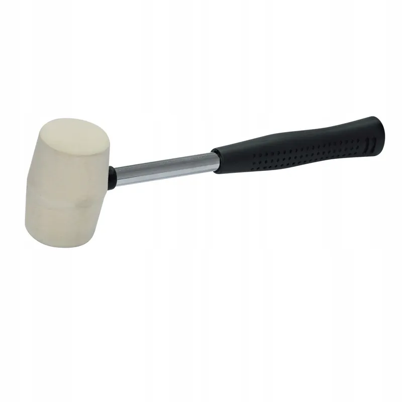 MŁOTEK GUMOWY Z DREWNIANĄ RĄCZKĄ (577)CECHY PRODUKTU: Młotek gumowy doskonale sprawdza się podczas prac wykończeniowych, montażowych i blacharskich. Gumowy obuch nie uszkadza kruchego materiału. Trzonek wykonany z drewna. ROZMIAR: 90 mm.