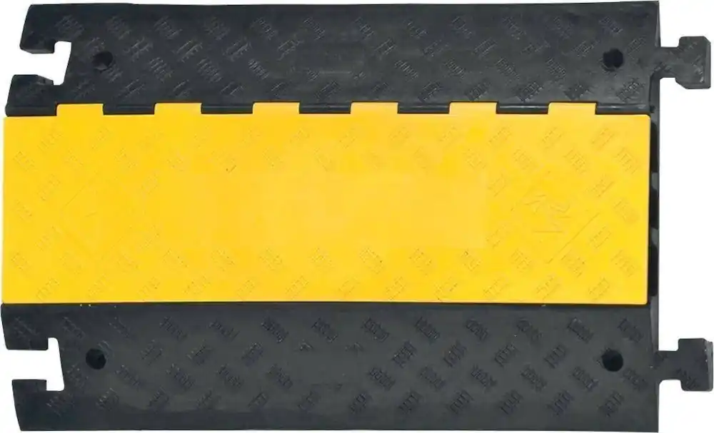 Most kablowy MORION, duży•duża wytrzymałość dzięki specjalnej mieszance twardej gumy •efekt sygnalizacyjny dzięki żółtej osłonie z wykonanej z wysokiej jakości tworzywa sztucznego •żebrowana, antypoślizgowa powierzchnia •3 kanały kablowe: 2 kanały 68 x 50 mm, 1 kanał 55 x 50 mm (szer. x wys.) •łatwy do przejechania i chroniący kable, węże lub rury •do okresowego ruchu ciężarowego (sprawdzony do 12 t nacisku na oś) •zalecana prędkość przejazdu: 5 km/h •możliwość trwałego zamocowania dzięki zintegrowanym uchwytom na kołki Uwaga: wszystkie elementy z systemem połączenie na pióro i wpust można dowolnie rozszerzać.