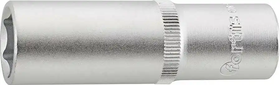 Końcówka wymienna klucza nasadowego 1/2″ , długa•chromowana matowo •stal chromowo-wanadowa, kuta •DIN 3124 •zabierak czworokątny DIN 3120 – C 12,5, ISO 1174 •z rowkiem ustalacza kulkowego •radełkowana powierzchnia uławiająca chwycenie