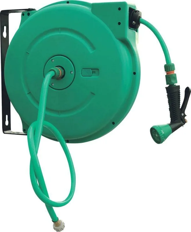 Nawijarka do węża ogrodowego•przyłącza pasują do sprzętów ogrodowych wiodących producentów •zamknięta obudowa z tworzywa sztucznego, odporna na działanie warunków atmosferycznych •dostawa: w komplecie regulowana dysza wielofunkcyjna