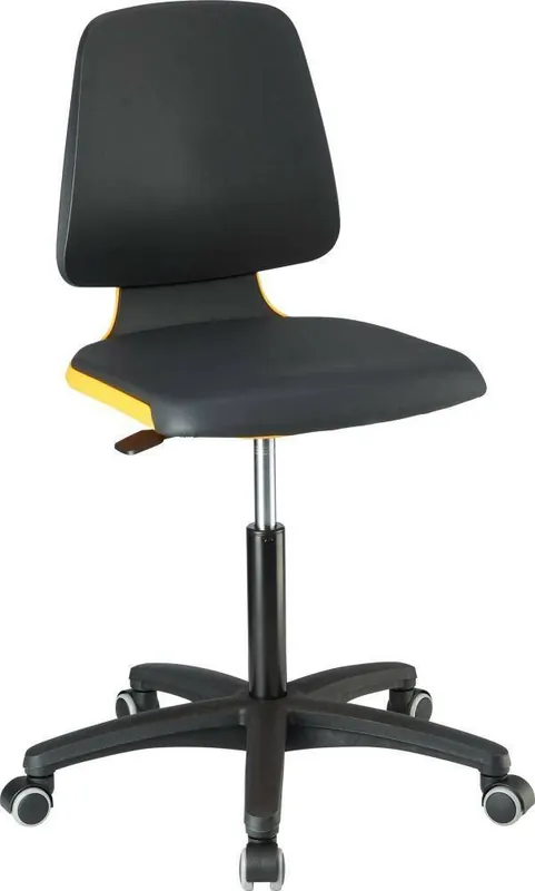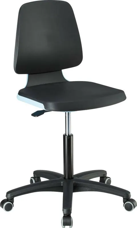 Krzesło obrotowe laboratoryjne bimos Labor Labsit 2•na kółkach, bez ryzyka niezaplanowanego toczenia się nieobciążonego krzesła, zminimalizowane ryzyko wypadków •funkcja 3D flex w oparciu •elastyczna krawędź przednia siedzenia •stabilny krzyż z tworzywa sztucznego •brak szczelin umożliwiających gromadzenie się zanieczyszczeń •odporne na środki dezynfekcyjne i chemikalia •antybakteryjne, nie zawiera materiałów szkodliwych