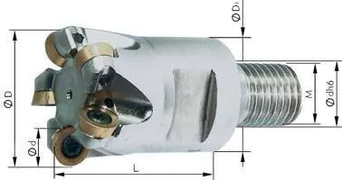 Głowica frezarska nasadzana 90° do obróbki aluminium, z chłodzeniem wewnętrznymWykonanie: głowica nasadzana 90°, korpus niklowany. Dostawa bez wymiennych płytek skrawających i wkrętaka. Zastosowanie: głowica przeznaczona do frezowania kątowego, frezowania płaszczyzn i rowków oraz dowcinania ukośnego. Uniwersalne zastosowanie do produkcji narzędzi i form.