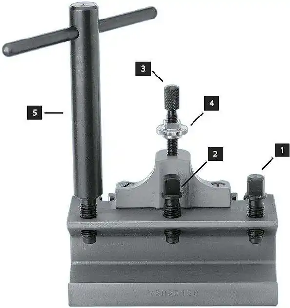 Akcesoria i części zamienne do imaków narzędziowychOpis ilustracji: 1. Śruba czworokątna Liczba Wspornik ze śrubami i nakrętką 3. Śruba regulacji wysokości 4 Nakrętka regulacji wysokości piąte Klucz nasadowy czworokątny