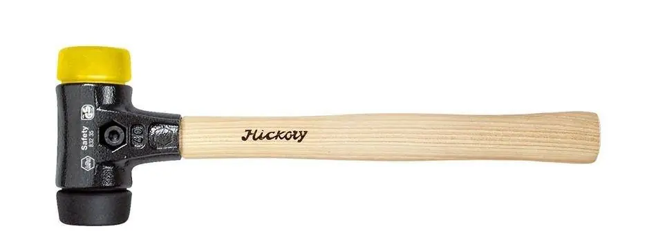 Wiha 26434 Młotek z miękkim obuchem hikory 30mmKod produktu: 26434Dobry projekt : Czarna końcówka / średnio miękka: np. do prac brukarskich, układania glazury, suchej zabudowy. Żółta końcówka / średnio twarda: np. do montażu narzędzi i maszyn, naprawy pojazdów, prac blacharskich i montażowych.Łatwiejsza praca: Łatwiejsza praca i optymalna moc uderzenia przy mniejszym nakładzie siły.Niższe koszty: Ergonomiczny trzonek z drewna hikory i końcówki młotka dostępne oddzielnie jako części zapasowe.Kod producenta: 26434EAN: 4010995264345Końcówka młotka okrągła: 30mmWaga: 295gSzerokość młotka: 87mmDługość młotka: 290mmSeria: 832-35