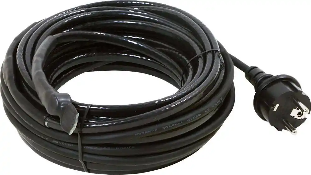Kabel grzewczy przeciw zamarzaniu, z wbudowanym termostatem•moc właściwa: 15 W/m •zasilanie: 230 V do 50/60 Hz •maks. temperatura pracy: 70 °C •automatyczne przełączanie: włączanie przy +3 °C i wyłączanie przy +10 °C •gotowy do montażu z wtyczką ze stykiem ochronnym •szybka i łatwa instalacja •do użytku wewnątrz i na zewnątrz