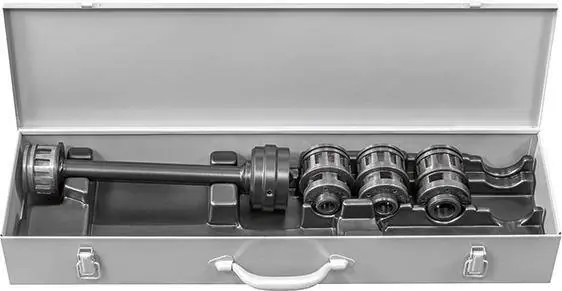 Zestaw gwintownic SWykonanie: niezwykle wąski kształt głowicy zapadkowej i głowic tnących również do prac w miejscachtrudno dostępnych. Dzielone ramię rurowe pozwala na krótki przesuw mechanizmu zapadkowegoi zapewnia możliwość zmniejszenia długości ramienia w przypadku prac w miejscach oograniczonej przestrzeni. Łatwa i szybka wymiana głowic tnących. Unikalna blokada głowicytnącej w dźwigni zapadkowej, gwarantująca pewne osadzenie podczas gwintowania. Zakres dostawy: dźwignia zapadkowa, szybkowymienne głowice tnące S, walizka.