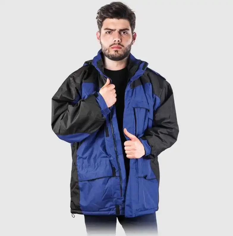 Kurtka przeciwdeszczowa z kapturem granatowy LRozmiar: LKolor: GRANATOWYWaga: 0.62 kgKurtka przeciwdeszczowa z kapturem. – 65% PCV, 35% poliester – zapinana na suwak z dodatkowymi zapięciami na napy – kaptur ściągany na troczki – dwie kieszenie zewnętrzne – ściągacz w rękawach zabezpieczający przed wiatrem – system wentylacji na plecach