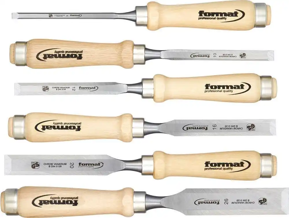 Ograniczona ilość Zestaw dłut płaskich z rękojeścią drewnianą, 6-częściowy FORMAT