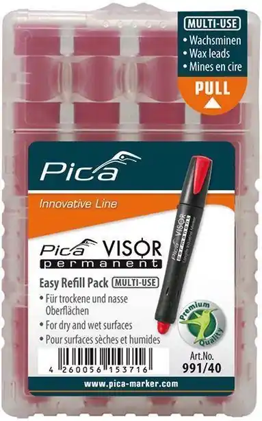 Zestaw zapasowych wkładów do markerów permanentnych VISORZastosowanie: Do znakowania i pisania na prawie wszystkich powierzchniach materiałów – nie maznaczenia, czy są one suche lub wilgotne, gładkie lub szorstkie, zapylone lub zabrudzoneolejem, jasne lub ciemne.