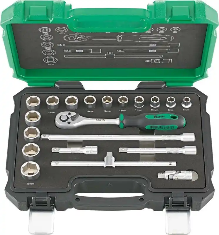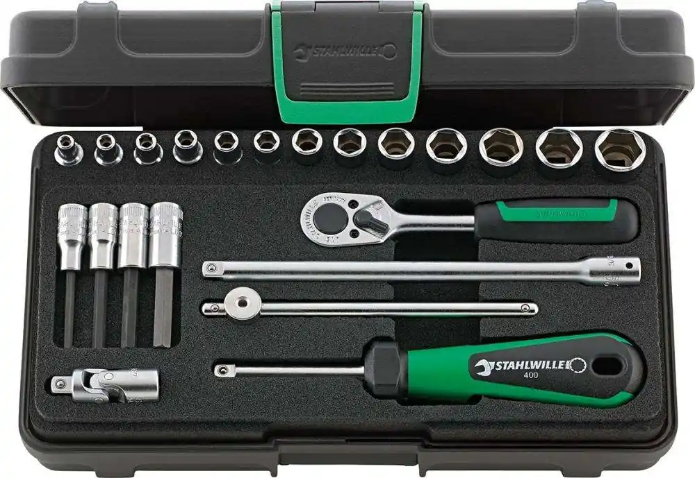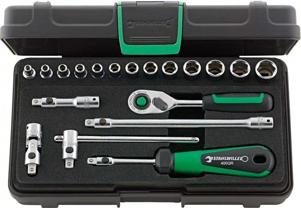Zestaw końcówek wymiennych klucza nasadowego 6-kątnych 1/4″, 19-częściowyWykonanie: narzędzia ze stali chromowej, chromowane. Końcówki wymienne klucza nasadowego ze stali wysokowydajnej HPQ®. Narzędzia bezpiecznie przechowywane we wkładce piankowej. Dostawa w kasecie z tworzywa sztucznego ABS przeznaczonej do układania w stosy.