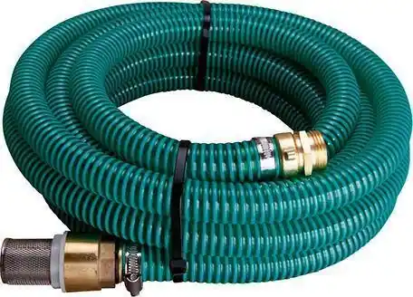 Wąż ssący, zielony, w zestawie•elastyczny wąż PVC •wzmocniony sztywną spiralą z twardego PCV odporną na uderzenia •gładka powłoka wewnętrzna gwarantuje niski spadek ciśnienia przy możliwie najwyższym natężeniu przepływu •falista powłoka zewnętrzna zapewnia optymalną wytrzymałość na zginanie •odpowiedni do różnych substancji chemicznych •zabezpieczony przed działaniem czynników atmosferycznych •zastosowanie: wodociągi domowe/pompy•wąż z miękkiego PVC z wewnętrzną spiralą z twardego PVC •armatura: zawór stopowy i armatura przyłączeniowa wykonane z mosiądzu •wąż w kolorze zielonym, przezroczysty •zastosowanie w zakresie temperatur od –5°C do +60°C