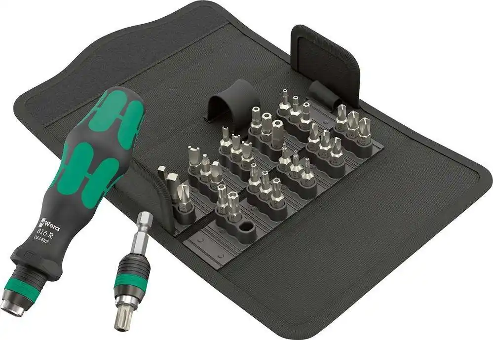 Zestaw bitów Kraftform Kompakt 70 Allround 70, etui tekstylnymWykonanie: z bitami ciągliwo-twardymi. Rękojeść Kraftform z odpornego na uderzenia tworzywa sztucznego ze zintegrowanymi strefami miękkimi dla lepszego chwytu i zabezpieczeniem przed staczaniem się narzędzia z miejsca pracy, z szybkowymiennym uchwytem Rapidaptor. Bity są trwale i stabilnie połączone z rękojeścią, a jednocześnie można je błyskawicznie wymienić. Z tulejką obrotową do łatwego przytrzymania przy zastosowaniach maszynowych. Bity i rękojeść ułożone w przejrzysty sposób w składanym etui, kompatybilne z systemem Wera 2go. Zastosowanie: bity ciągliwo-twarde, do montażu śrub w metalu i blasze. Do obsługi ręcznej i mechanicznej.