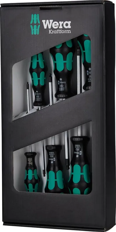 Wiha 42989 Wkrętaki precyzyjne PicoFinish electric Kod produktu: 42989Wiha 42989 Wkrętaki precyzyjne PicoFinish® electric 6 el W przypadku połączeń śrubowych w mechanice precyzyjnej wyzwaniem jest praca z odpowiednim wyczuciem, tak by nie uszkodzić obrabianego elementu. Wkrętaki precyzyjne PicoFinish® firmy Wiha dzięki swoim długim, smukłym rękojeściom i strefie szybkiego obrotu nadają się idealnie do wykonywania precyzyjnych prac przy delikatnych elementach z dziedziny mechaniki precyzyjnej. Ergonomiczne wzornictwo rękojeści ze strefą miękką zapewnia komfort pracy. Pełne wyczucia i szybkie obracanie wspomagane jest przez kołpak obrotowy poruszający się bez oporu. Ponadto nadrukowane na kapturkach obrotowych wkrętaków symbole ułatwiają wybór wkrętaka o właściwym profilu. Ten izolowany wkrętak precyzyjny poddawany jest kontroli jednostkowej zgodnie z międzynarodową normą IEC 60900 i umożliwia bezpieczną pracę w obszarach znajdujących się pod napięciem do 1000 V AC. Zestaw zawiera 6 wkrętaków precyzyjnych PicoFinish® i uchwyt. W tym ostatnim można wygodnie przechowywać wkrętaki precyzyjne na stanowisku pracy. Zastosowanie Idealny do precyzyjnych prac związanych z wkręcaniem i wykręcaniem elementów pod napięciem. Łatwiejsza praca – Z praktycznym uchwytem z tworzywa sztucznego do zawieszenia lub ustawienia. Łatwiejsza obsługa – Wyjątkowo długi kapturek obrotowy umożliwia optymalne prowadzenie. Wyższa efektywność pracy – Koncepcja rozmiarów rękojeści wkrętaków zapewniająca optymalne dopasowanie precyzji i kontroli dokręcania. Pełna ochrona – Każde narzędzie testowane pojedynczo napięciem 10 000 V AC i dopuszczone do użycia pod napięciem 1000 V AC. Większa precyzja – Prace z dużym wyczuciem i kontrolowane przenoszenie siły dzięki rękojeści ze strefą Softgrip. Zestaw zawiera: 1x Wkrętak precyzyjny PicoFinish® electric (42374), Płaski: 1,5 mm, Widoczna długość trzonu: 50 mm 1x Wkrętak precyzyjny PicoFinish® electric (42375), Płaski: 2,0 mm, Widoczna długość trzonu: 50 mm 1x Wkrętak precyzyjny PicoFinish® electric (42376), Płaski: 2,5 mm, Widoczna długość trzonu: 65 mm 1x Wkrętak precyzyjny PicoFinish® electric (42377), Płaski: 3 mm, Widoczna długość trzonu: 65 mm 1x Wkrętak precyzyjny PicoFinish® electric (42379), Phillips: PH00, Widoczna długość trzonu: 50 mm 1x Wkrętak precyzyjny PicoFinish® electric (42378), Phillips: PH0, Widoczna długość trzonu: 65 mm Ilość sztuk w zestawie: 6 szt.
