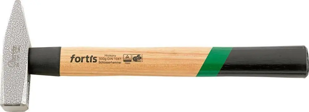 Młotek ślusarski, z tulejką ochronną•ochrona przed korozją dzięki lakierowi młotkowemu •obuch i rąb szlifowane •ze stali ulepszonej cieplnie C45 •kuty matrycowo, hartowany i odpuszczany •krawędzie łamane •główka młotka wykonana według normy DIN 1041 •trzonek hikorowy z hartowaną tuleją ochronną