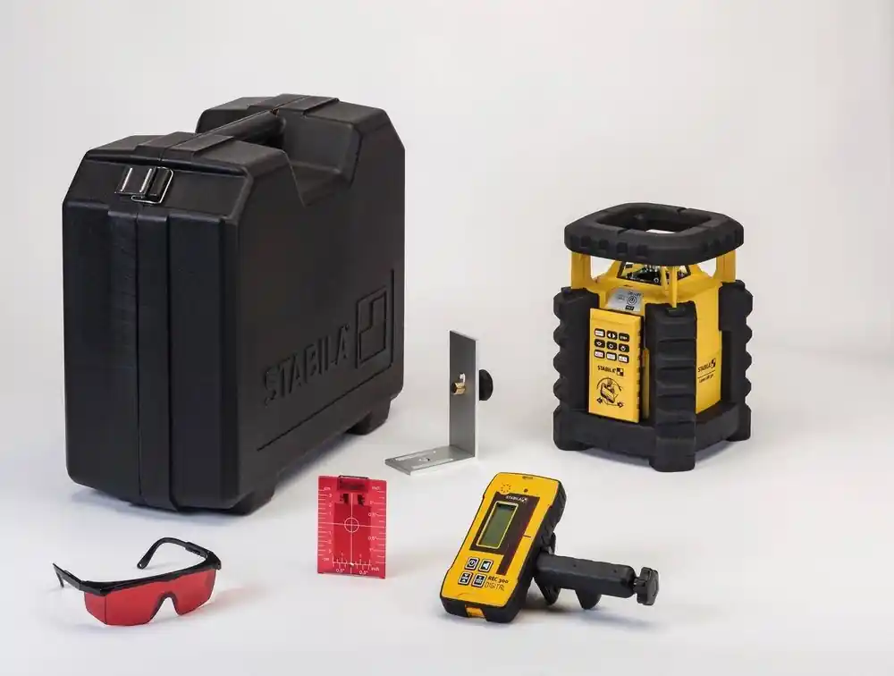 Najwyższa precyzja na dużych odległościachZautomatyzowany, sterowany silnikiem laser obrotowy – wysoka dokładność niwelowania: ±0,1 mm/m, szybkie samoniwelowanie w ciągu 20 sekund.Cztery funkcje lasera umożliwiające wszechstronne zastosowanie – rotacja w poziomie i pionie, funkcja pionu i kąt prosty (90°) w trybie pionowym.Stopień ochrony IP 65 – wodo- i pyłoszczelny.Pochłaniająca uderzenia powłoka STABILA Softgrip zapewnia ochronę przed uderzeniami – układ optyczny jest dodatkowo chroniony przez stabilną głowicę obudowy.Łatwa obsługa za pośrednictwem trzech przycisków sterowania – włączanie/wyłączanie, tryb Tilt, tryb pracy ręcznej.Szufladka na baterie – łatwa wymiana, również bezpośrednio na statywie.Duży zakres pracy z odbiornikiem z zestawu REC 160 RG – średnica do 600 m.Dwa zintegrowane z obudową gwinty 5/8″ do użytkowania w poziomie i pionie na statywie.Płytka celownicza z uchwytem magnetycznym i krzyżem nitkowym.Okulary do pracy z laserem – zwiększają widoczność promienia laserowego o 50%.Stabilna walizka do wygodnego transportu i bezpiecznego przechowywania.Przykładowe zastosowaniaW trakcie robót murarskich – układanie warstwy wyrównawczej.W budownictwie żelbetowym – betonowanie fundamentów lub przygotowywanie ław drutowych.W budownictwie konstrukcji metalowych – wyrównywanie i stawianie dźwigarów stalowych podczas budowy hal.W ogrodnictwie i architekturze krajobrazu – tworzenie powierzchni ogrodowych, ścieżek i powierzchni brukowanych.W trakcie robót ciesielskich lub w budownictwie drewnianym – licowanie elewacji.W budownictwie podziemnym i w trakcie układania przewodów rurowych – ustawianie przewodów rurowych.Parametry techniczneKlasa lasera: 2Moc: < 1 mWDługość fali lasera: 635 nmZakres samoniwelowania +/-: 5°Dokładność niwelowania +/-: 0,10 mm/mØ zakresu pracy odbiornika w zestawie: 600 mCzas pracy: 40 hTyp baterii: DIP: 65Przyłącze statywu: 5/8″
