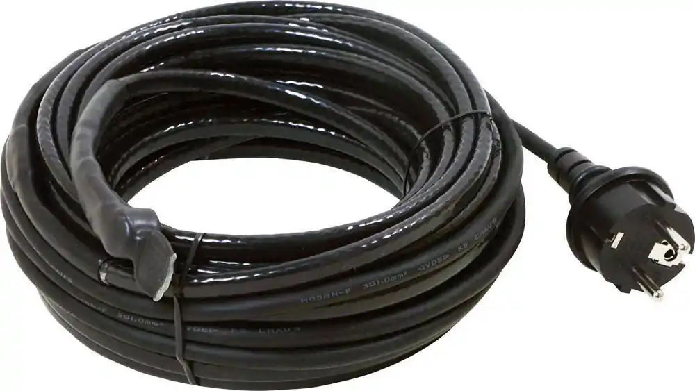 Kabel grzewczy przeciw zamarzaniu, z wbudowanym termostatem•moc właściwa: 15 W/m •zasilanie: 230 V do 50/60 Hz •maks. temperatura pracy: 70 °C •automatyczne przełączanie: włączanie przy +3 °C i wyłączanie przy +10 °C •gotowy do montażu z wtyczką ze stykiem ochronnym •szybka i łatwa instalacja •do użytku wewnątrz i na zewnątrz