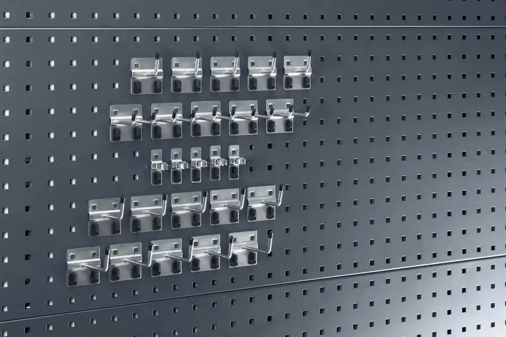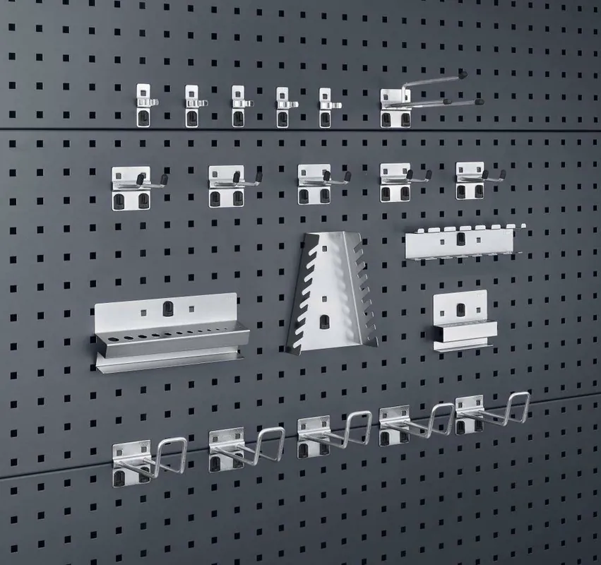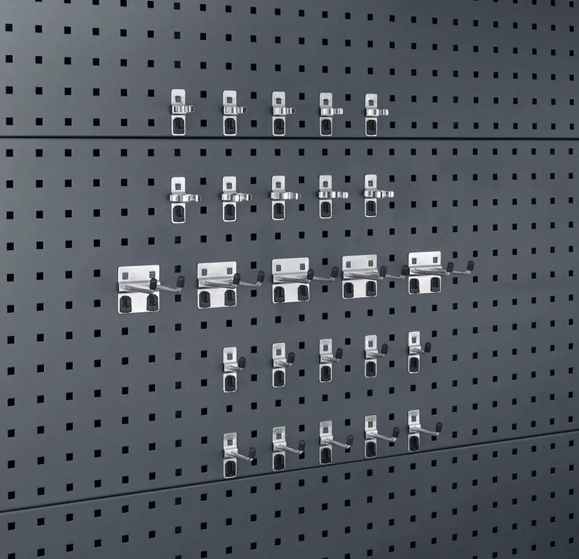 Zestaw 25-częściowyZakres dostawy: po 5 haków plus gł. 25/50/75 mm, 5 podwójnych haków gł. 50 mm, 5 zacisków mocujących o średnicy 19 mm, 1 klucz montażowy