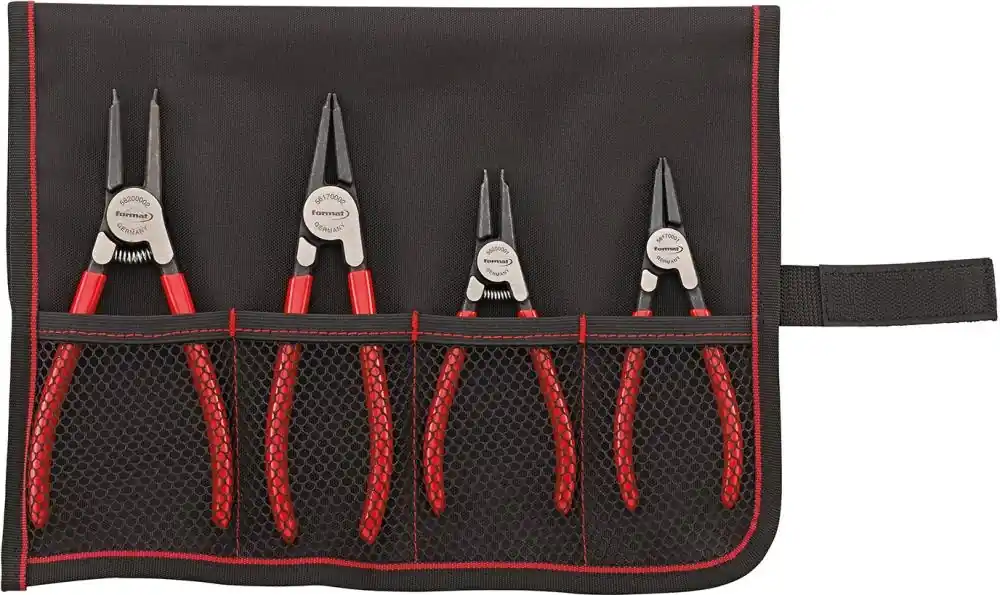 szczypce do pierścieni osadczych Knipex 00 19 56Zestaw szczypiec do pierścieni zabezpieczających KNIPEXWykonanie: Kształt prosty, DIN 5254 A i 5256 C, kształt wygięty, DIN 5254 B i 5256 D.Ze stali chromowo-wanadowej, kuta, hartowana w oleju i odpuszczona,główka polerowana. Specjalna geometria końcówek zapobiegajaca ześlizgnięciu z pierścienia. Rękojeści pokryte tworzywem sztucznym. Dostawa w torbie zwijanej.Zawartość zestawu: po jednym do pierścieni wewnętrznych J2 i J21 (nr zam. 5614 + 5615) po jednym do pierścieni zewnętrznych A2 i A21 (nr zam. 5631 + 5632)Szczypce fosforanowane, czarne, wykonane ze stali elektrycznej-wanadowejGłówka polerowanaStalłożyskowa chromowo-wanadowaRękojeści z tworzywa sztucznego, powlekaneZestaw zawiera: 4 szczypce do pierścieni osadczych zewnętrznych i wewnętrznych, proste i wygięteDo montażu pierścieni osadczych sprężynujących w otworach o średnicy Ø 19 -60 [mm] , Ø 19 -60 [mm] ,Ø 10 -25 [mm], Ø 12 -25 [mm]Do montażu pierścieni osadczych sprężynujących na wałach o średnicy Ø 19 -60 [mm] , Ø 19 -60 [mm] ,Ø 10 -25 [mm], Ø 12 -25 [mm]Wyposażenie: materiałowe etui