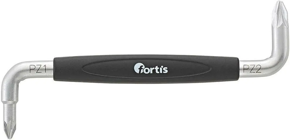 Wkrętak dwustronny, odgięty, kątowy, do śrub z gniazdem krzyżowym PZ•ze stali chromowo-wanadowej •chrom satynowy •końcówki wygięte 90° i 180°