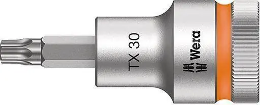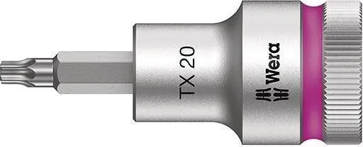 Nasadka wkrętakowa 1/2″ Zyklop do śrub z łbem z gniazdem TORXWykonanie: ze stali chromowo-wanadowej, chromowana matowo. Z mechanicznym przytrzymaniem, gdy mocowanie magnetyczne jest niemożliwe lub niewskazane.