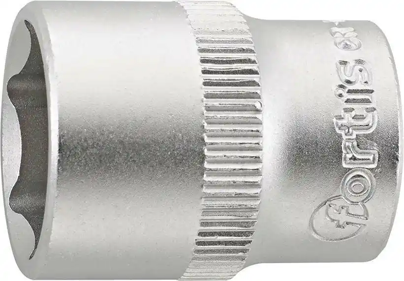 Końcówka wymienna klucza nasadowego 3/8″•chromowana matowo, stal chromowo-wanadowa, kuta •DIN 3124 •zabierak czworokątny DIN 3120 – C 10, ISO 1174 •z rowkiem ustalacza kulkowego i radełkowana powierzchnia uławiająca chwycenie