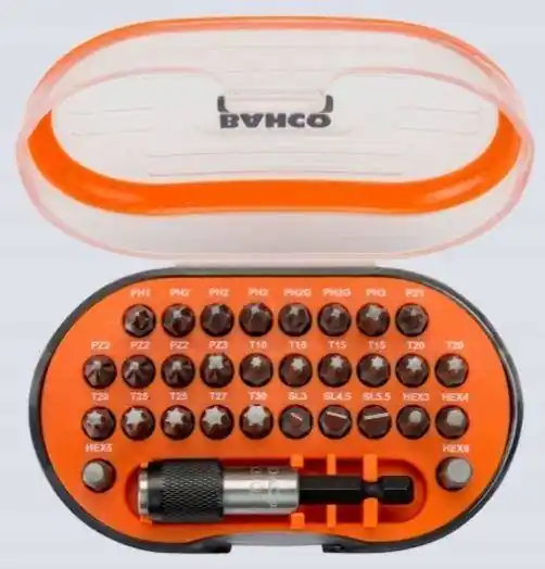 Zestaw 31 szt. bitów:30 bitów i 1 magnetyczny szybkomocujący uchwyt bitówGniazdo: 1/4” DIN 3126-C6.3, ISO 1173Wykończenie: Fosforan cynkuMateriał: wysokostopowa stal jakościowaZestaw zawiera bity w rozmiarach:PH1 x1, PH2 x3, PH3 x1, PH2G x2PZ1 x1, PZ2 x3, PZ3 x1TORX:T-10 x1,T-15 x3,T-20 x3,T-25 x2,T27 x1,T-30 x1PŁASKI:3,0 x1,4,5 x1,5.5 x1HEX:3mm. x1,4mm. x1,5mm. x1,6mm. x1Uchwyt magnetyczny 1/4″ x1