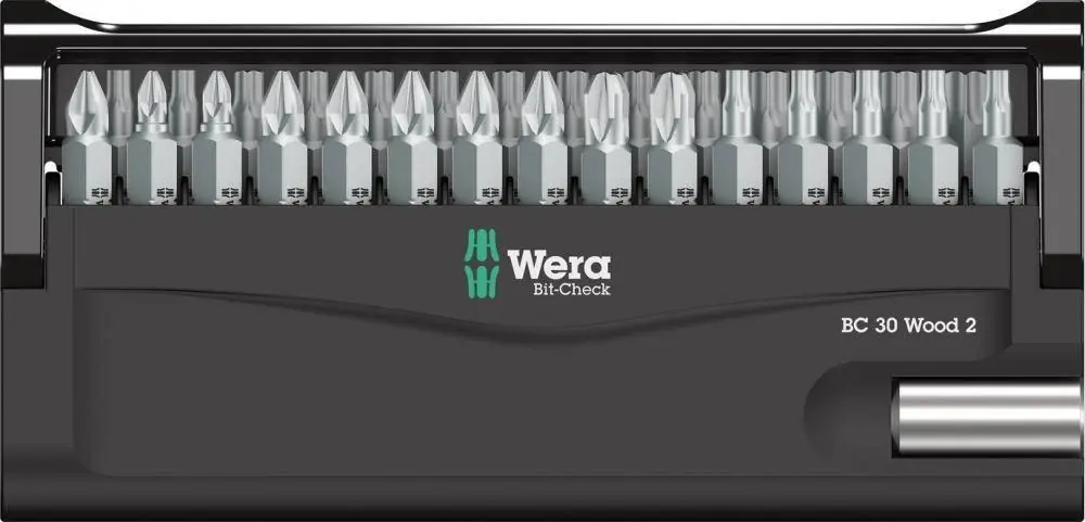 ZESTAW BITÓW PH PZ I TORX WERA IMPAKTOR 057695Profesjonalny zestaw bitów niemieckiej firmy Wera. Zestaw zawiera 6 bitów o długości 50mm. Komplet znajduje się w opakowaniu z tworzywa sztucznego z funkcją zamykania. Końcówki ułożone w przejrzysty sposób dzięki czemu mogą być szybko wyciągnięte. W skład zestawu wchodzi:2 bity krzyżowe PH 2; 3 2 bity krzyżowe PZ 2; 32 bity do śrub z wewnętrznym gniazdem TORX® T 25; 30Zastosowanie: do wkrętów z wgłębieniem krzyżowym Phillips, Pozidriv i TORX®Chwyt: sześciokątny 1/4″, do gniazd wg DIN 3126-D 6,3 (ISO 1173)Część robocza: wykorzystanie w pełni właściwości materiałowych w połączeniu ze specjalną geometrią, która spełnia szczególnie wysokie wymagania, umożliwia narzędziom Impaktor firmy Wera uzyskanie ponadprzeciętnej żywotności; przeznaczony specjalnie do pracy z wkrętarkami udarowymi; powłoka diamentowa zapewnia zwiększone tarcie, ograniczając ryzyko wyślizgiwania się narzędzia z gniazda wkrętu.Bity Wera w połączeniu z uchwytami firmy Wera wykazują znacznie dłuższą żywotność, dzięki czemu ograniczysz koszty związane z zakupem nowych końcówek, bitów.Przez połączenie dwóch stref skrętnych w uchwycie Impaktor oraz strefy skrętnej w grocie Impaktor uzyskuje sie w rezultacie tak zwany system TriTorsion, czyli 3 strefy skrętne!