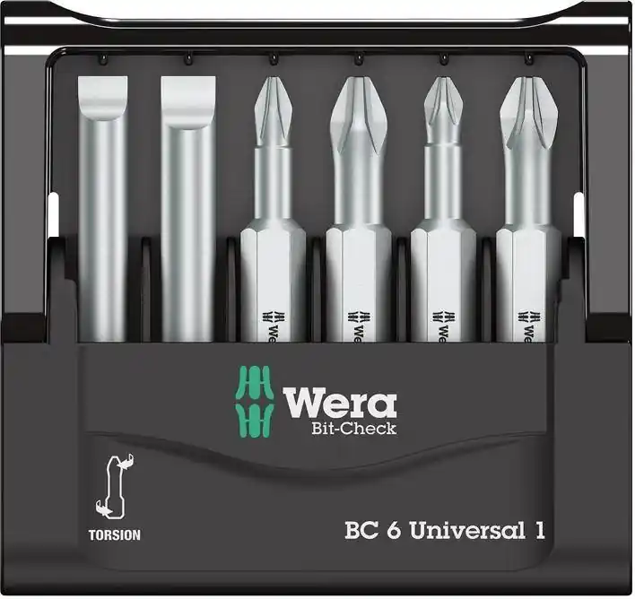 Zestaw bitów Mini-Check, krzyżowe PH/PZ/gniazdo TORX®Wykonanie: z bitami ciągliwo-twardymi w uchwycie z tworzywa sztucznego. Bity są rozmieszczone w przejrzysty sposób, dziękiczemu można je szybko wyciągnąć. Zastosowanie: do użytku uniwersalnego.Zawartość zestawu: 1 bit krzyżowy PH 2 2 bity krzyżowe PZ 1; 2 3 bity do śrub z łbem z gniazdem TORX® T 15; 20; 25