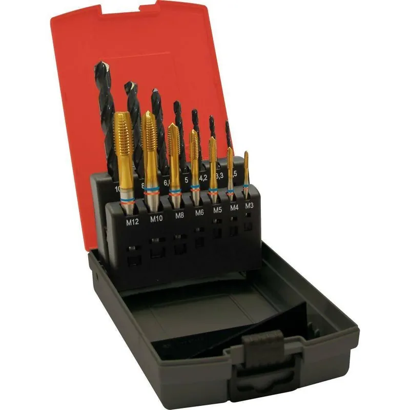Zestaw gwintowników maszynowych do otworów przelotowychWykonanie: kształt B. Dostarczane w solidnym pudełku z tworzywa sztucznego wysokiej jakości.