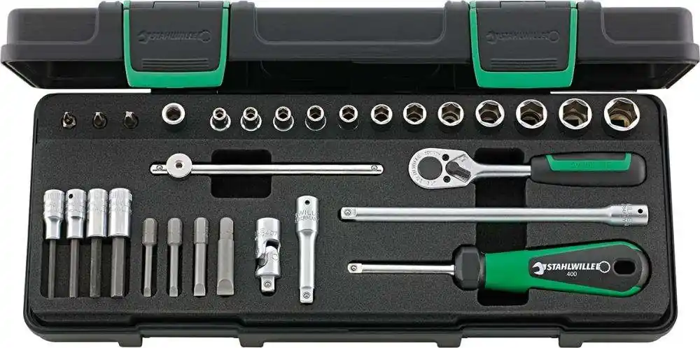 Zestaw końcówek wymiennych klucza nasadowego 12-kątnych 1/2″, 31-częściowyWykonanie: narzędzia ze stali chromowej, chromowane. Końcówki wymienne klucza nasadowego ze stali wysokowydajnej HPQ®, z radełkowaną powierzchnią ułatwiająca chwycenie. Narzędzia bezpiecznie przechowywane we wkładce piankowej. Dostawa w kasecie z tworzywa sztucznego ABS przeznaczonej do układania w stosy.
