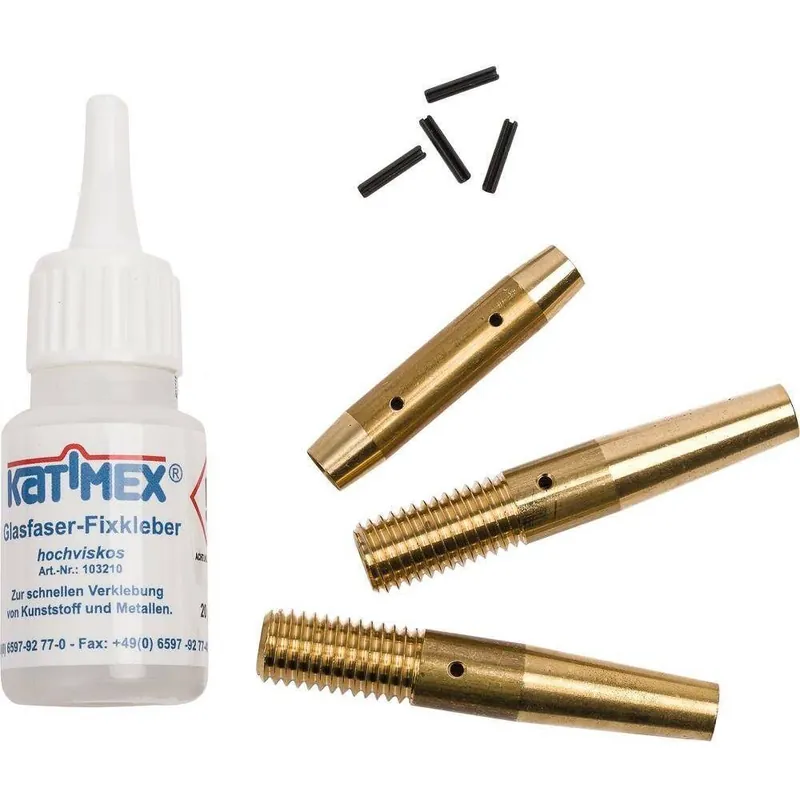Zestaw naprawczy do Kabelmax®Zestaw naprawczy do taśmy złożony z 5 tulejek końcowych, głowicy prowadzącej z oczkiem zaczepowym ∅ 11 mm, 3 tulejek łączących, specjalnego kleju 3 g.