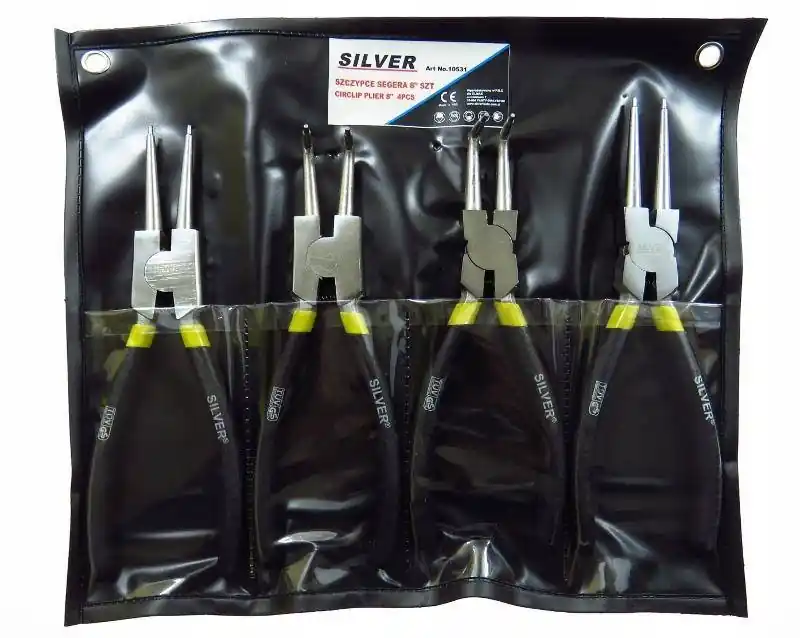 Zestaw szczypiec miniaturowychDostawa w etui z poliestru do zawieszenia na pasku, z zapięciem na rzep i uchwytami pętelkowymi do zawieszania.Rękojeści powlekane tworzywem sztucznym z wielokomponentowymi osłonkami z tworzywa sztucznego.Zawartość zestawu: Szczypce nastawne do rur Cobra®, 150 mm Szczypce uniwersalne z ostro zakończonymi szczękami 145 mm