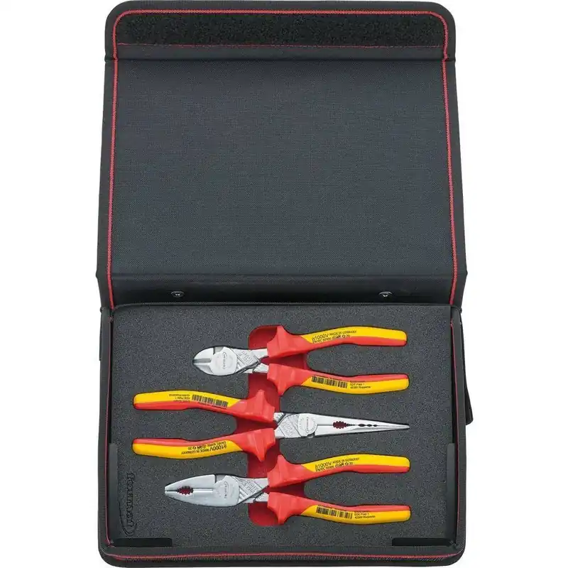 Zestaw 3 sztuk szczypiec izolowanych VDEMilwaukeeZAWARTOŚĆ ZESTAWU :1 X ZESTAW SZCZYPIEC VDE – 1000VSPECYFIKACJA:Drut miękki: 3,9 mmDrut twardy: 2,2 mmŚruba: 3,2 mmDługość (mm): 205Długość całkowita (mm): 205Waga (g): 200SPECYFIKACJA:Drut miękki: 6 mmDrut twardy: 2 mmPrzewód: 11 mmDługość (mm): 160Długość całkowita (mm): 160Waga (g): 210SPECYFIKACJA:Drut miękki: 5,2 mmDrut twardy: 2,2 mmPrzewód: 12 mmDługość (mm) : 180Długość całkowita (mm): 180Waga (g): 250Cechy produktu:Certyfikowane narzędzia VDE (DIN EN / IEC 60900).Przetestowane do 10 000 woltów i gwarantowane do 1000 woltów.Testowane na zimno do -40 °.Wykończenie powierzchni szarego tytanu nie odbija światła i zapewnia maksymalną odporność na korozję.Indukcyjne hartowane krawędzie tnące do cięcia nawet najtwardszych materiałów.Precyzyjnie obrobione połączenie zapewnia maksymalne przeniesienie mocy i optymalną siłę uciągu dla łatwej i nie wymagającej wysiłku pracy.Ergonomiczny uchwyt z miękkim uchwytem zapewnia wygodną obsługę i dobry chwyt.Ząbkowane szczęki wewnętrzne i wydłużona głowica, idealne do prac związanych z chwytaniem i zaginaniemKuta, utwardzona i hartowana głowicaOstrza stalowe są całkowicie kute, hartowane i odpuszczane dla najlepszej trwałości.Optymalna przekładnia dźwigniowa i maksymalne przeniesienie siły na ostrza dla łatwej i bezwysiłkowej pracyMożliwość dokręcania śrub M10 (17mm)Powłoka z tytanu nieodbijająca światła i odporna na korozjęErgonomiczny, 3-komponentowy uchwyt dla wysokiej wygody użytkowaniaMożliwość doczepienia smyczyPrzetestowane przy napięciu 10 000 V i posiadają atest do 1 000 V.Kuta, utwardzona i hartowana głowica pokryta powłoką tytanową, która nie odbija światła i zapewnia odporność na korozję.Ostrza hartowane indukcyjnie.Ergonomiczny uchwyt dla maksymalnego przeniesienia siły na ostrza.