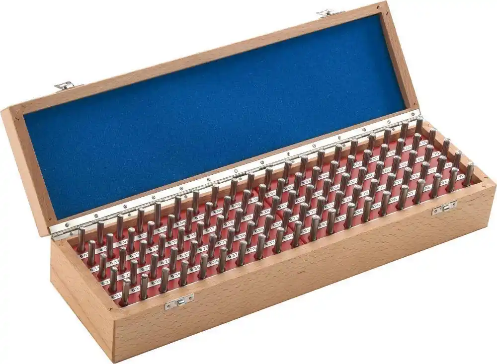 Zestaw wałeczków pomiarowych, klasa tolerancji 1Wykonanie: z hartowanej stali do produkcji sprawdzianów, wielokrotnie starzonej i docieranej. Zastosowanie: jako wzorce do ustawiania przyrządów pomiarowych, do sprawdzania odstępów między osiami,stożków i innych przedmiotów obrabianych w połączeniu z płytkami wzorcowymi, do określaniaśrednicy podziałowej gwintu lub średnicy podziałowej uzębień.