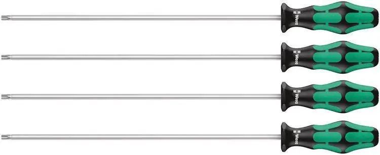 Zestaw wkrętaków TORX® z mechaniczną funkcją przytrzymywaniaGrot 300 mm Końcówka nicromatt dla zwiększenia momentu obrotowego i dokładności pasowania, z mechaniczną funkcją przytrzymywania. Z 3-komponentową, wzmocnioną rękojeścią Kraftform-Plus. Jest to idealne w sytuacji, gdymagnetyczne przytrzymanie nie jest niemożliwe.