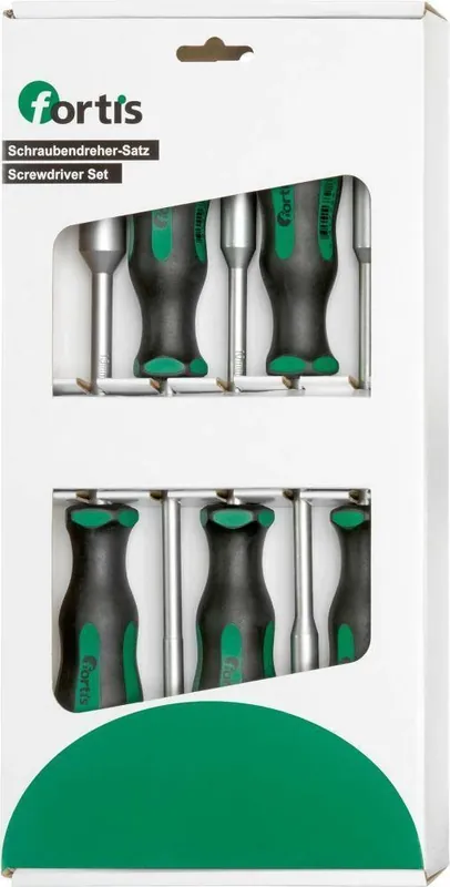 Zestaw wkrętaków nasadowych, do śrub z łbem sześciokątnym•trzpień okrągły •chromowany •rękojeść z wielokomponentowego tworzywa sztucznego •sześciokątny kołnierz zapobiegający staczaniu narzędzia z miejsca pracy Dostawa: w kartonie z okienkiem.