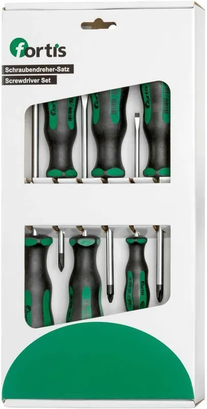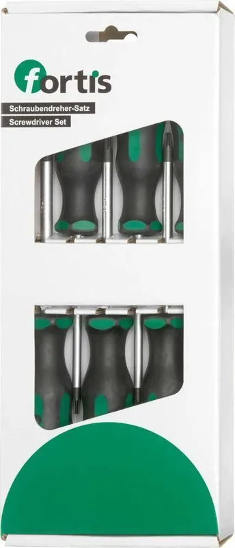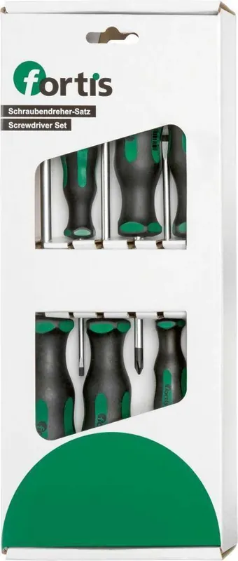 Zestaw wkrętaków•okrągłe ostrze z czarną końcówką•ze stali chromowo-wanadowej •chromowane •rękojeść z wielokomponentowego tworzywa sztucznego •zabezpieczenie przed staczaniem narzędzia z miejsca pracy Dostawa: w kartonie z okienkiem. Zawartość: 4 wkrętaki do śrub z rowkiem 3; 4; 5,5; 6,5 mm, 2 wkrętaki do śrub z gniazdem krzyżowym PH 1; PH 2, 1 wkrętak do śrub z gniazdem krzyżowym PZ 2