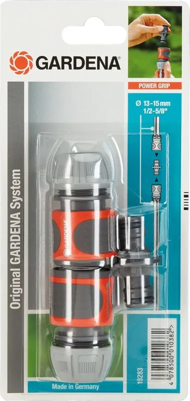 Zestaw Sprzęgający / Złączy / Szybkozłączek GARDENA Komplet do połączenia 2 węży z możliwością szybkiego rozłączenia  Dzięki oryginalnemu zestawowi złączy GARDENA można w mgnieniu oka przedłużyć wąż ogrodowy.Łącznik jest przeznaczony na węże o średnicy 13 mm (1/2″ ) – 15 mm (5/8″).Zestaw zawiera wszystkie części potrzebne do podłączenia dwóch węży z możliwością szybkiego rozłączenia.