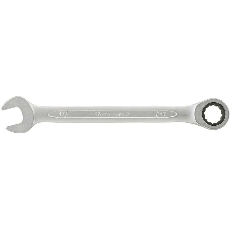Klucz płasko-oczkowy z grzechotkąWykonanie: Kształt prosty. Odchylenie szczęk 15°. Momenty obrotowe przewyższają wymagania norm DIN 3110,ISO 3318.Stal chromowo-wanadowa, chromowana. Precyzyjnie uzębiony mechanizm zapadkowy z 72 zębami i kątem powrotu zapadki 5°.