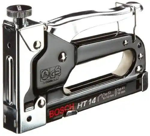 Bosch Professional Zszywacz HT 14Zszywacze ręczne do szybkiego mocowania np. tkanin, folii, kartonu i materiałów izolacyjnychWielozadaniowy zszywacz wykonany z wytrzymałej, polerowanej stali, z bezstopniową regulacją siły, wyściełanym uchwytem i blokadą uchwytuZszywacze młotkowe Bosch wbijają zszywki w materiał z ogromną siłą uderzeniaZszywka odpowiednia typ 53, długość 4, 6, 8, 10, 12, 14 mm, odpowiednia szpilka typ 41, długość 14 mmKolor CzarnyDługość rękojeści5/8, 25.57waga przedmiotu570 gramówNumer serii producenta 0603038001Rozmiar HT 14